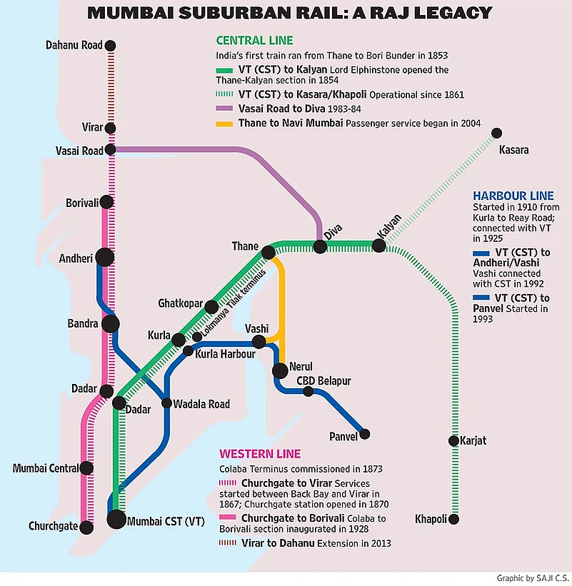 The need for additional services and tracks had been raised as early as the 1960s. “Mumbai has been growing continuously. In 1964, the proposal for a trans-Harbour link was stopped,” says railway historian Rajendra Aklekar, author of Halt Station India: The Dramatic Tale of the Nation’s First Rail Lines. “There have been no serious attempts since then. There is no parallel mode of transport. In all these years, we have developed a total of seven different modes, including the metro and the monorail, but there is little connectivity between those modes.”