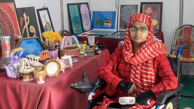 At the Kashmir Haat festival in Srinagar, only a few customers stop at the calligraphy stall. They approach a bespectacled woman, who is in a wheelchair, to inquire about the prices of her handwriting art pieces, then talk to her about her life and then move on without buying anything.