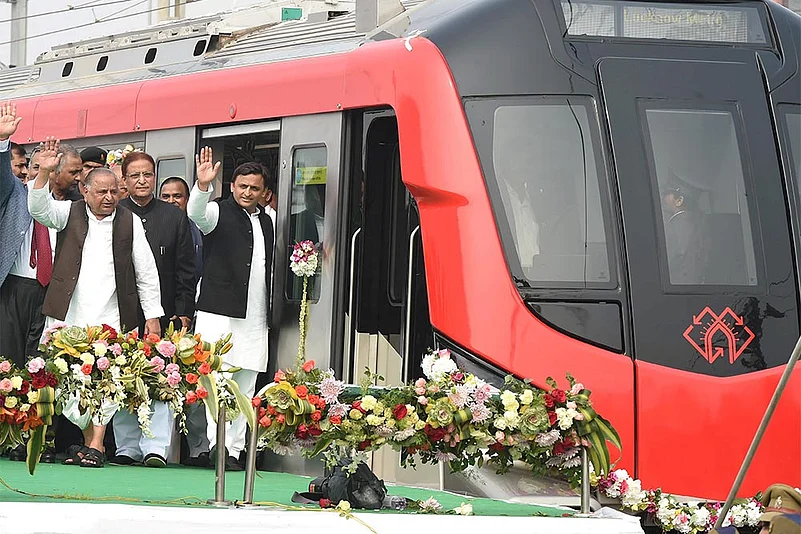Yet, the scion of a powerful regional political dynasty, Yadav, has succeeded in putting a spin to his development agenda. The Lucknow Metro rail network—an aspirational acquisition of many cities—is another fancy project the CM has been personally monitoring. The proposed eight-lane Samajwadi Poorvanchal Expressway is another pet road project. Akhilesh’s most recent pre-election budget saw his biggest push to infrastructure, with the highest allocation in the past decade for hard infrastructure.