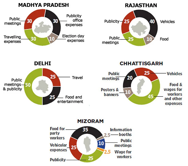 - Expenses include opium in western Rajasthan, liquor and cash distribution, purchase of tickets if necessary. This can go up to 50 per cent of campaign budget.