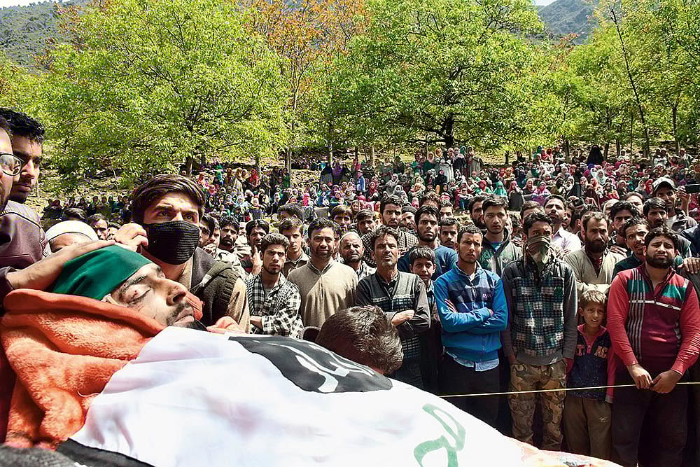 On the morning of April 24, a fierce encounter broke out in south Kashmir’s Tral region. Unlike most gunfights between militants and security forces in the Valley, this encounter didn’t take place in any residential building, but in the hilly forests of Laam. Four militants, an army personnel and a policeman were killed in the encounter. The police identified the militants as belonging to the outlawed Jaish-e-Mohammed and claimed to have recovered a large cache of arms and ammunition. “It shows the Jaish has no dearth of weapons,” says an official.