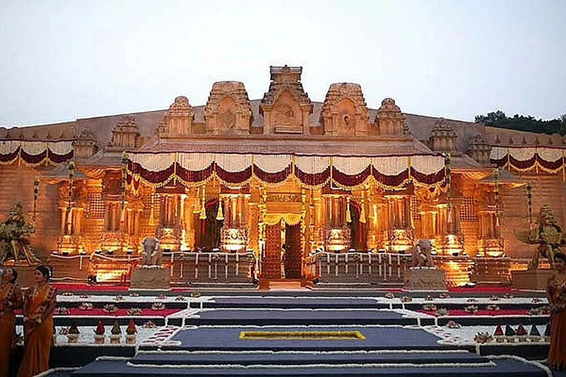 It was that once glorious city that mining magnate Reddy recreated in Bangalore's sprawling Palace Grounds for his daugther Brahmani's wedding on Wednesday, an event that's been in the news for the past several weeks thanks to an elaborate LCD wedding invitation which went viral on social media. The wedding venue featured chariots, replicas of temples and mansions and, once again, there's speculation about the money the Bellary tycoon lavished on it. Embarrassingly for the BJP, it comes in the midst of a nationwide liquidity crunch from last week's currency demonetisation.