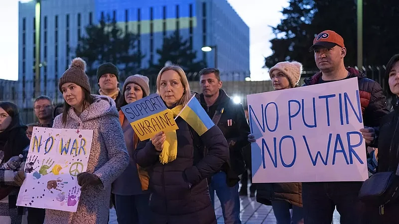 Demonstrators rally in support of Ukraine