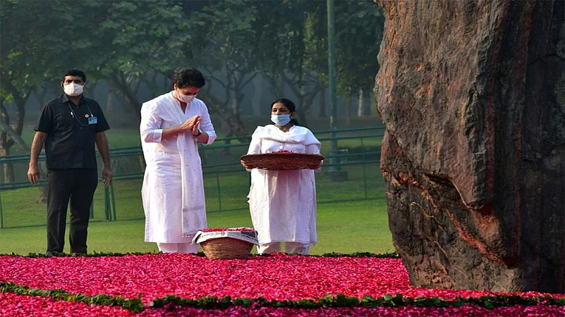 Congress general secretary Priyanka Gandhi Vadra and other party workers paid floral tributes to former prime minister Indira Gandhi on her 36th death anniversary at her memorial, "Shakti Sthal", in N
