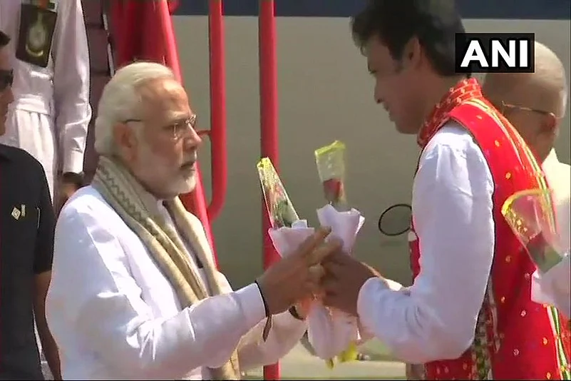 "A 100-ft-long stage was erected for the big function. This is a big day for us as it marks a political transition for the state. The victory has been made possible by the development work of Modiji that has inspired our workers in Tripura to work for a change," BJP general secretary Ram Madhav told PTI in Agartala.