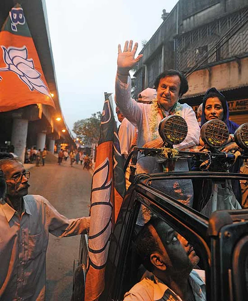 Like most days since his name first featured amongst the 17 BJP candidates from the state, the 68-year-old actor sets off early from his home in Calcutta’s Tollygunge. But nightfall doesn’t exactly mean pack-up time. “There are still a couple of rallies that he is scheduled to address,” says a party worker. A 500-strong crowd has gathered in Mandir Tala, on the road into Howrah straight from the new bridge, Vidyasagar Setu. It includes interested listeners, curious bypassers, party workers and Baker’s many fans.