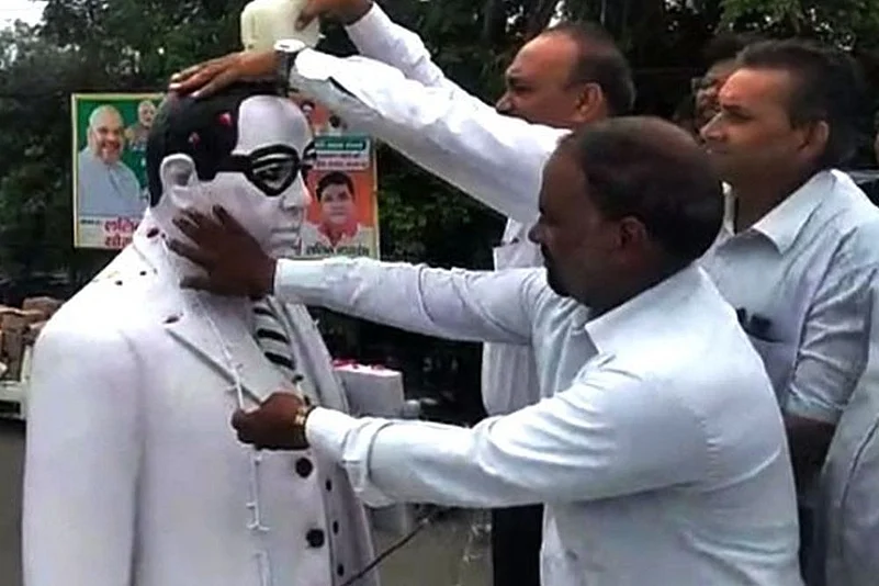 A group of Dalit lawyers in Meerut, Uttar Pradesh "purified" the statue of Dr B.R. Ambedkar with milk and 'gangaajal' soon after it was garlanded by Bharatiya Janata Party's (BJP) state secretary Sunil Bansal on Friday.