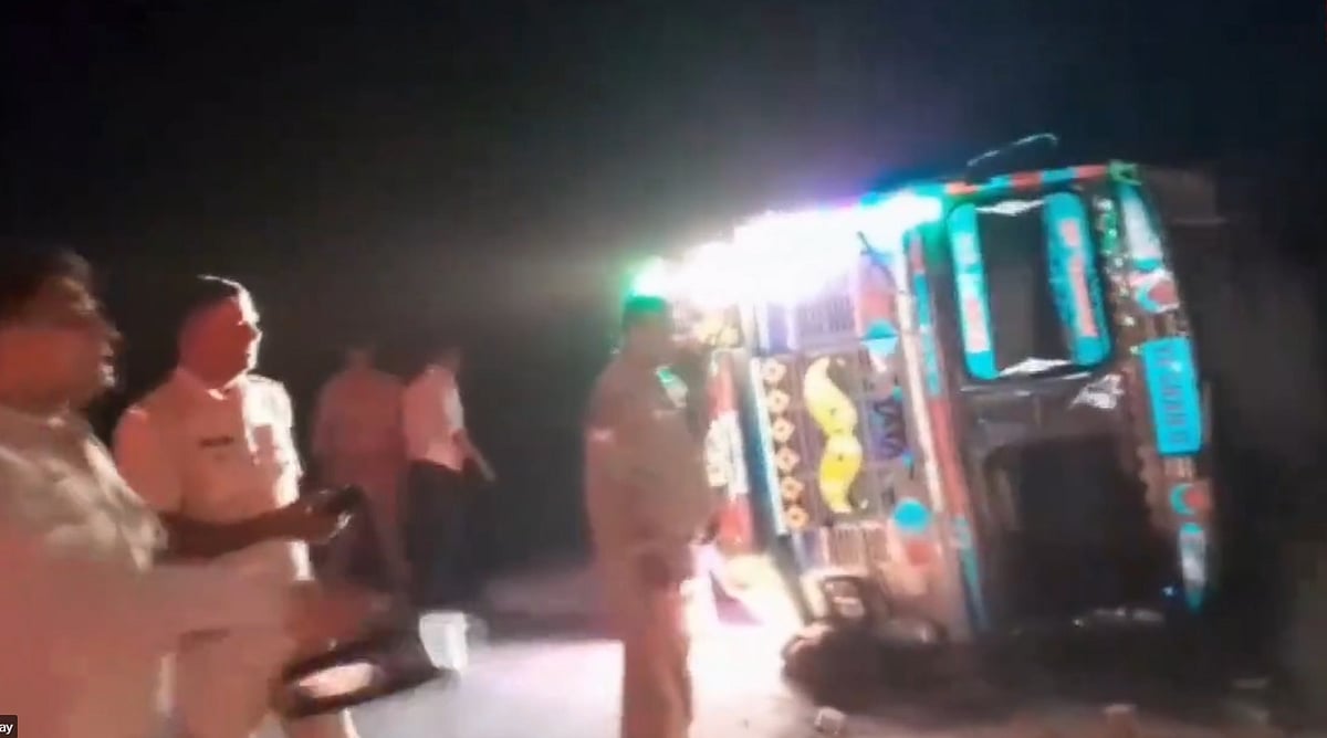 Ashok Kumar Meena, SP, Shahjahanpur told ANI, "Around 11 pm, we got the information that in the Khutar PS area, a bus was parked, devotees who were going to Purnagiri were sitting inside the bus and some devotees were having food at a Dhaba. A truck lost control and turned turtle on top of the bus... A total of 11 people died and 10 were injured. All injured have been admitted to hospitals...".