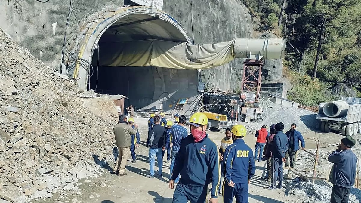 An under-construction tunnel part of the Brahmakhal-Yamunotri National Highway collapsed on Sunday in Uttarakhand's Uttarkashi district. The incident happened on the Silkyara-Dandalgaon stretch.