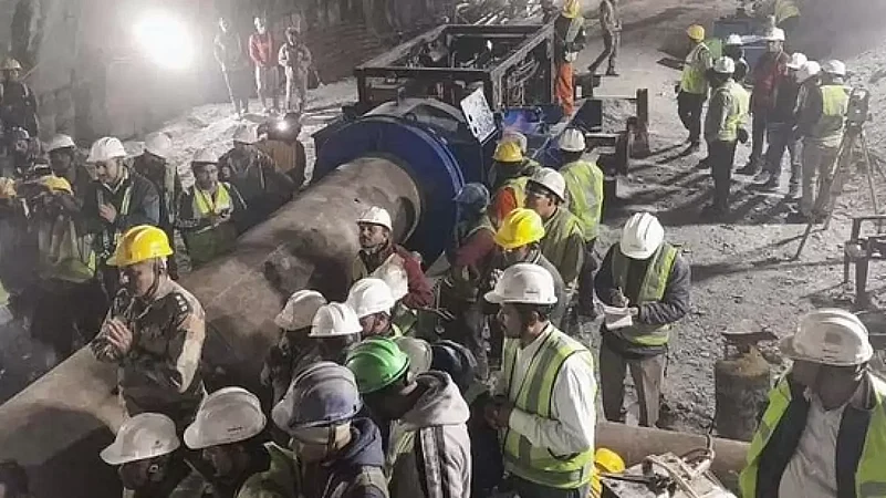 The rescue teams had made significant headway overnight in the ongoing operation to free 40 workers trapped inside the Silkyara Tunnel, with five pipes, each with a diameter of 900 mm and a length of 6 meters, now fully inserted into the debris.