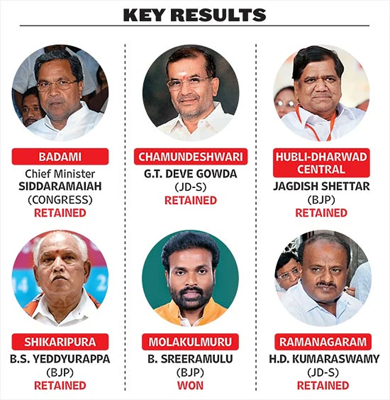 The last Karnataka CM to return to power after a full term (in 1978) was the late D. Devaraj Urs, whom Siddaramaiah looks up to as a role model. Like Urs, Siddaramaiah was relying on the backward class-Dalit voters along with minorities to replicate that feat, besides a slew of welfare schemes his government had implemented. “The first thing is that the dominant castes have dominated Karnataka’s politics,” says Harish Ramaswamy who teaches political science at Karnatak University in Dharwad, pointing to how the Lingayats backed the BJP and the Vokkaligas in the south stayed with the JD(S). Experts say the BJP’s seat tally in the Lingayat heartland suggests that Siddaramaiah’s gambit to split the community’s vote by offering them minority-religion status has backfired. As proof, they point out that several Lingayat ministers at the forefront of the cause have lost their seats.