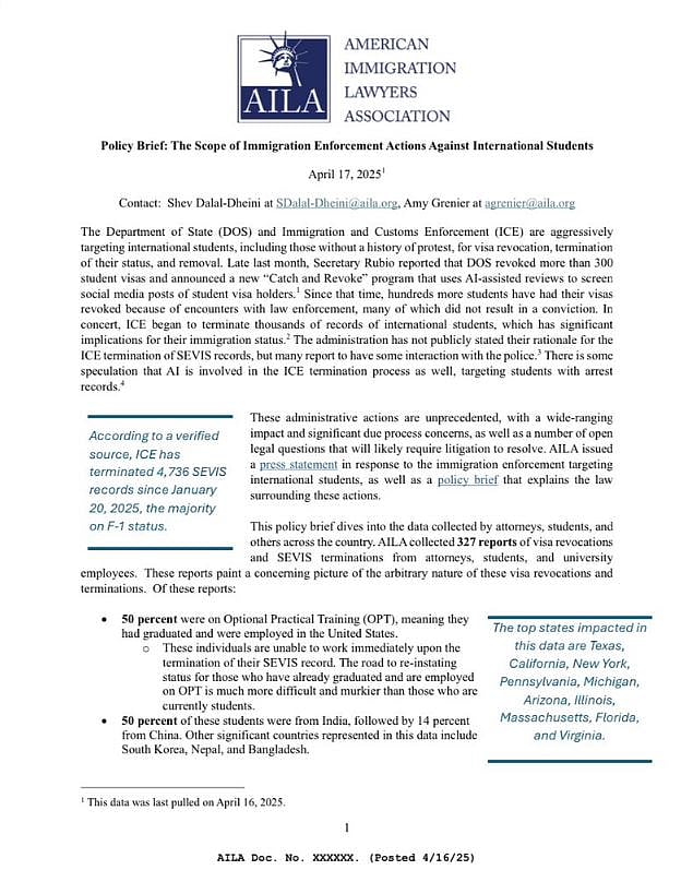Amid the intensifying crisis over visa revocations in the United States, American Immigration Lawyers Association (AILA) revealed that around 50 percent of international students in the US who have recently had their visas revoked, were from India. AILA's comments were based on 327 reports on these instances from students, attorneys, and university employees.