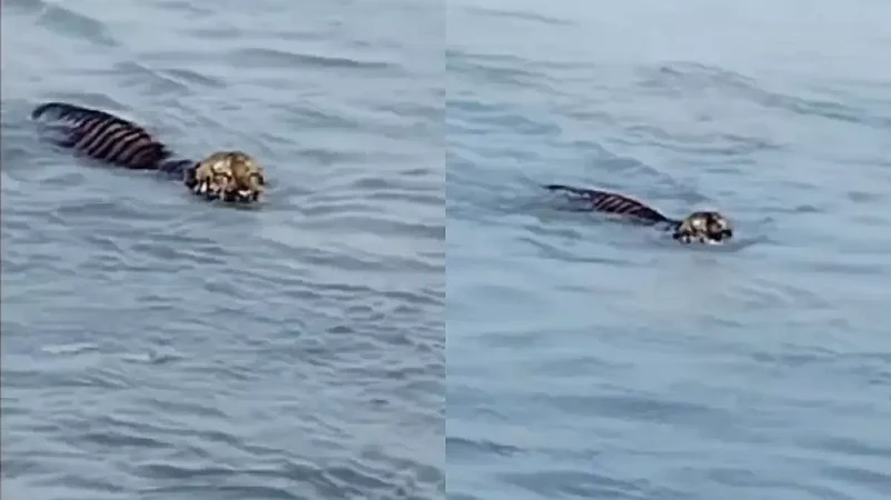 The video that has now gone viral shows a full-grown tiger swimming and then taking shelter in a narrow cave on Peacock Island near Guwajatithat is famous for the ancient Umananda temple.