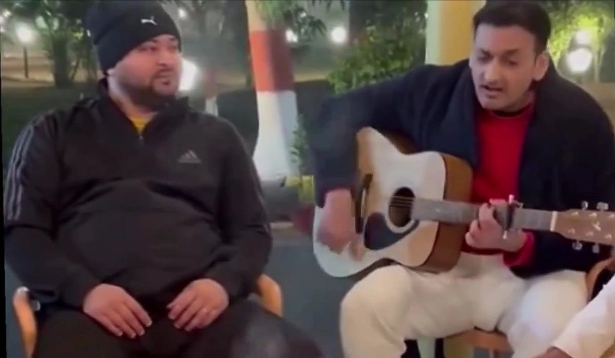 PTI shared a video where RJD MLS Yusuf Salahuddin was seen playing a guitar as he sung Hindi songs and the rest of the leaders could be seen sitting around a bonfire.