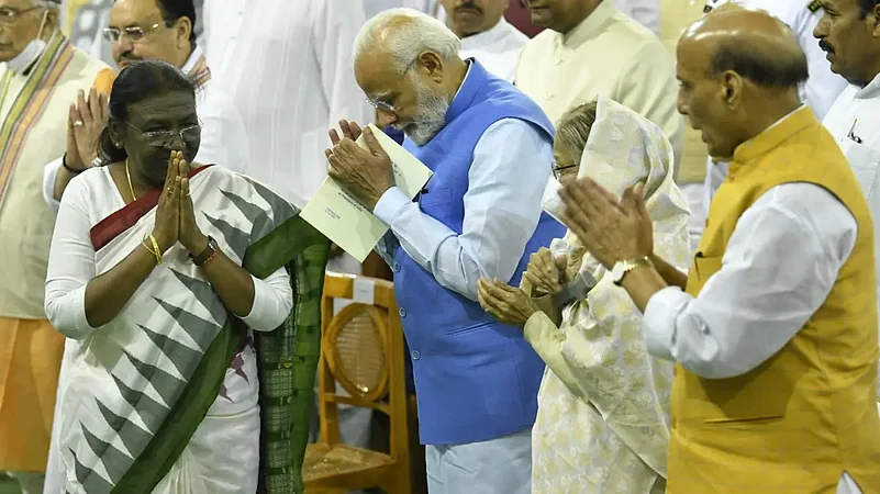 Modi said, "In her address after taking oath, President Droupadi Murmu Ji gave a message of hope and compassion. She emphasised on India's accomplishments and presented a futuristic vision of the path ahead at a time when India is marking Azadi Ka Amrit Mahotsav."