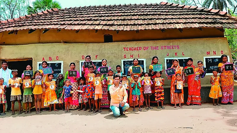 For about four years now, several nonedescript alleys in the equally unremarkable tribal villages in Jamuria area of southwestern West Bengal, that reveal tell-tale signs of poverty—have held an unexpected surprise for rare visitors, government officers, employees or NGO workers. For these localities had turned into open-air schools, with rows of mud walls of thatched houses painted black serving as writing boards.