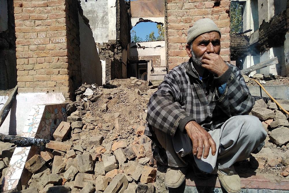 A day after seven people, including a 13-year-old boy, were killed in an explosion at an encounter site at Laroo in Jammu and Kashmir’s Kulgam, scores of people were found visiting the burnt house here. Men, women, youths and even children were seen taking rounds of the house of Ghulam Ahmad Bhat, which turned into rubble during the gunfight between the militants and the security forces on Sunday morning. Three militants of Jaish Muhammad outfit were killed in the encounter. An hour later, some left over explosives went off killing seven civilians.
