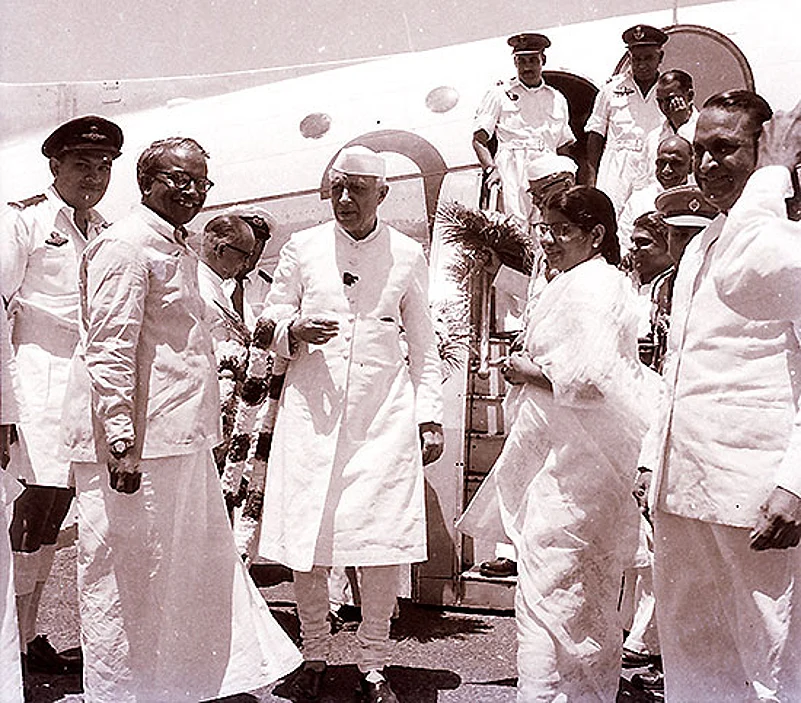 EMS, chief minister in Kerala’s first Left government, welcomes the then prime minister Jawaharlal Nehru at Trivandrum airport