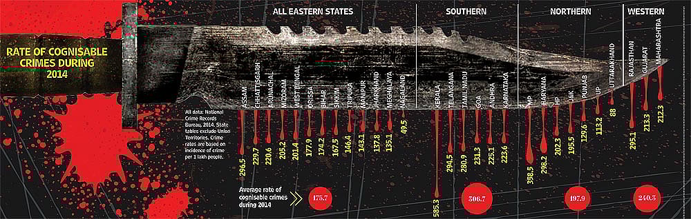 The closer one is to a crime scene, the worse it can seem. There are other factors at play. “In Tamil Nadu, the crime rate reflects who is politically powerful,” says Dr M. Srinivasan, head, department of criminology, University of Madras. The AIADMK, he says, is known to dislike wild swings in crime rates. “Therefore, the police there will not immediately register cases. They tend to wait, collect evidence, see if they have a case. So, in Tamil Nadu the crime rate doesn’t officially increase but is that really the case?”
