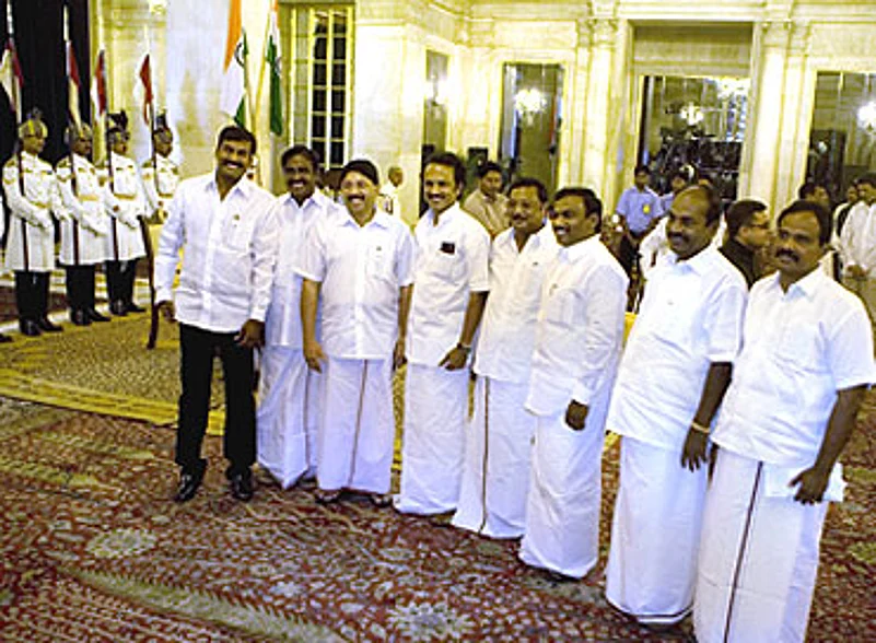 Family aside, cabinet berths were also demanded for T.R. Baalu and A. Raja, but most see that as hopeless tokenism. Even here, say party insiders, the affiliations of these two outsiders to different family branches played a major role in their fortunes. Both Raja and Baalu are said to be close to the Rajathiammal camp, and only one among the three from the camp, including Kanimozhi, could be accommodated given the limited seats. Even among the four MoS positions the party has got, S.S. Palanimanickam is said to owe allegiance to Rajathiammal, while the remaining three (Gandhiselvan, D. Napolean and Jagatrakshakan) have Stalin’s ear. On her stepping aside, Kanimozhi told Outlook: "It was the right thing to do. Let’s leave it at that. There is nothing great in what I have done. The party is more important than me." However, Tamil writer Gnani feels Kanimozhi’s withdrawal could only be tactical and there could well be a plan in place to "accommodate" her later. Incidentally, both Kanimozhi and Baalu skipped the swearing-in ceremony on May 28.