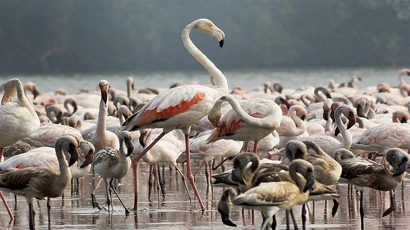 A lake in Navi Mumbai breaks out in a riot of pink as flamingos chill