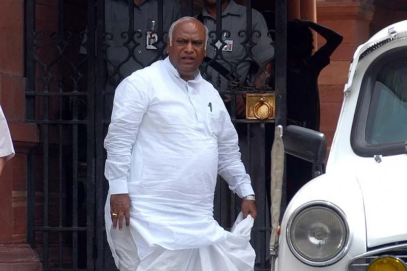 Congress Leader Mallikarjun Kharge was stunned today in when a TDP MP in the Lok Sabha accused him of "beating" him while he was tapping his shoulder asking him to move aside.