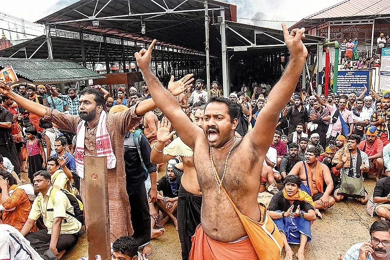 As BJP state president P.S. Sreedharan Pillai put it, the agitation was a “golden opportunity”. Though the party had made steady gains in the 2014 Lok Sabha election and the 2016 assembly election, the Left’s victory in May’s Chengannur by election—which Pillai himself contested—was a setback, with the BJP’s vote share dipping by 7,500. But five months later, Pillai was taking CM Pinarayi Vijayan head on.