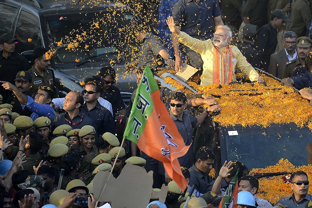 Among the reasons the BJP leader reels off, the party is banking most on its welfare programmes. In this, the BJP may have taken a leaf out of the Congress’s book. “The UPA returned to power in 2009 only because of NREGA and the Rs 60,000-crore farm loan waiver,” admits a BJP leader from Uttar Pradesh. In fact, less than two years into power, the BJP government changed its stance on the job guarantee scheme. From describing it as a “living monument of failures”, Modi was forced to term it as “the nation’s pride”. By that time, feedback from grassroots leaders about the scheme’s efficacy—even RSS cadres vouched for it—persuaded it. From being believers in the trickledown theory—that government should invest in infrastructure and successful sectors will stimulate the economy—the BJP moved big into targeted intervention.