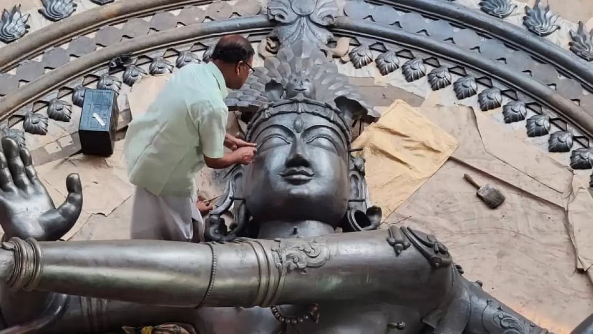 In a remarkable display of artistry and cultural significance, a colossal 'Nataraja' statue, believed to be the world's tallest, is being meticulously installed at the prestigious venue of the upcoming G20 Summit. This awe-inspiring 28-foot tall statue, inclusive of its pedestal, has been crafted using the ancient lost-wax technique of metal casting, echoing the remarkable artistry of the famed Chola bronzes from the past.