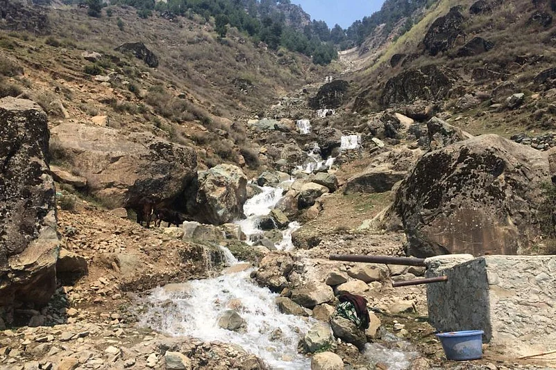 Seeping through the mountain, the water is coming down toward the village through a stream.