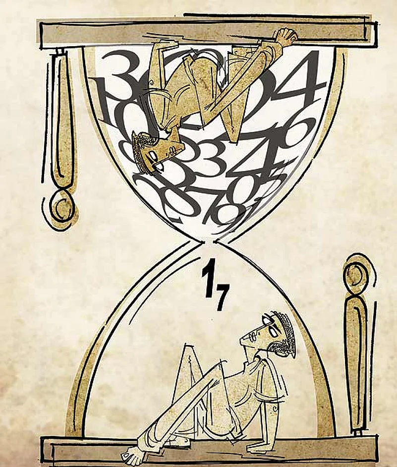 So, 17 is perhaps the most important number shaping our lives and histories. Because it’s a trickster, that one. When you consider the two digits separately, 1 represents unity, a bulwark of certainty against the vagaries of chance, but the second digit, 7, is again the most common random number cited by people when asked to pick one between 5 and 10. When you join the two digits physically, the shape you get is a nice right angle triangle, and then it sneers at Pythagoras, because though the descender of 7 forms the hypotenuse, no way will 17 as the sum of the squares of the other two sides (of lengths 1 and 4) give you a nice square root and a good-citizen equivalent of a hypotenuse. This dodgy number represents the twisted fundamentals of existence, the Big Joke, the quest for whose punchline is the real aim of all human striving.