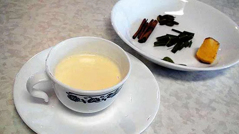 - Chai with spices and herbs (ginger, cardamom, cinnamon), boiled to perfection