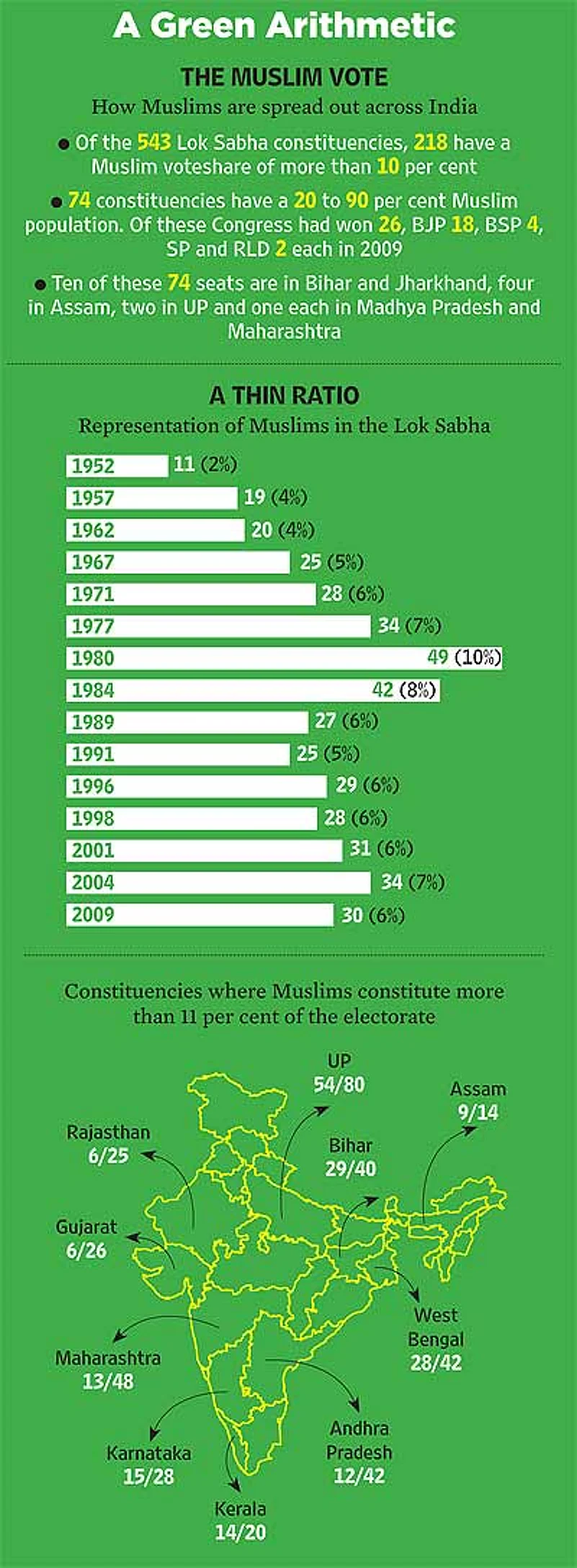 Will it be right to infer from this that the lines between the Congress and BJP are blurring in the Muslim eye as they are in the Hindu eye? Will Muslims too see the difference between the two as only about who manages the economy and governs the country better? Are Muslims going to see their interests as not distinct from those of the Hindus? If they do, that would be cause for celebration for the BJP. For, will it not prove what they have been saying all these years—that Muslims should not be treated as a separate social, political or economic category? Narendra Modi has been speaking almost like a Marxist to make the point: poor Muslims should not fight poor Hindus but fight poverty in solidarity with them.