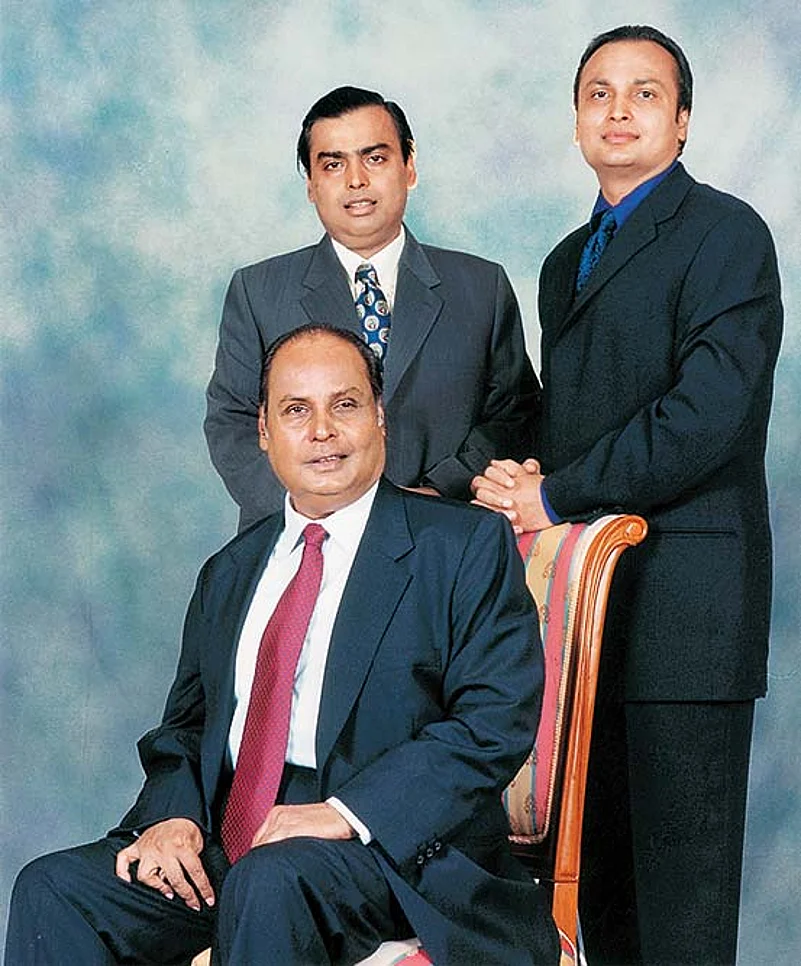 Mukesh Ambani with Dhirubhai Ambani and Anil Ambani