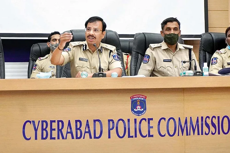 Cyberabad Police commissioner V.C. Sajjanar during a press conference to divulge details on arrests made in the loan scam..