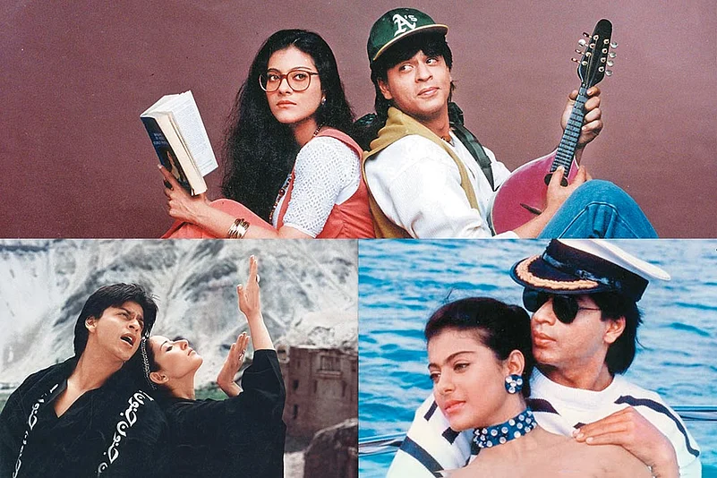 Stills from SRK-starrers (from top) Dilwale Dulhania Le Jayenge (with Kajol), Dil Se (with Manisha Koirala) and Baazigar (with Kajol)