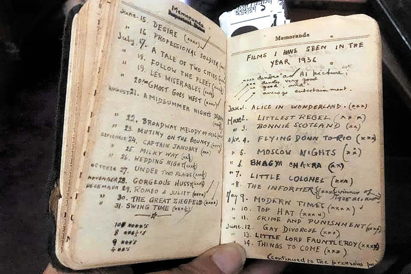 From the 15-year-old Satyajit Ray’s diaries, listing films he had watched in 1935 and 1936—mainly Hollywood films—with “star ratings” given to each.