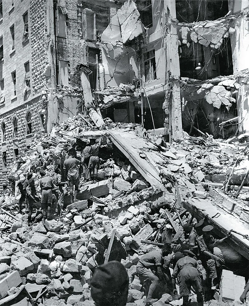 King David, 1946 Debris after bombing of the hotel in Jerusalem, Palestine