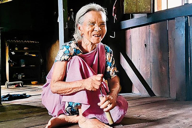 Down the pathway and about 300 metres away, Khnang (in pic), at 80, lives all by herself in a house raised on stilts. It is not often these days that she has to call her children, but that has not erased the tunes from her mind. “I now hum the tunes whenever I remember them and I feel happy,” she says, the ray of sunlight coming in through the door giving a shine to her mane of silvery hair. She then hums the four tunes of various durations. “See, I can still do it,” she says with an infectious toothy grin.
