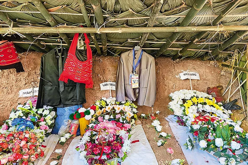 There are no Christmas buntings in Oting. No stars are hung. No fairy lights light up the cold nights here. One had a child two months ago. Another was planning on getting married. A mother lost her twins. Another lost her only support. Twelve were laid to rest in the village cemetery after the funeral in Mon. Their graves are in a row. On the graves, there are simple tributes. A bar of chocolate, Maggi noodles packets, a muffler, a pair of socks, wafers and cloth bags with the motifs of the Konyak tribe. A lot of flowers, too. The ones that will endure the winter. In this harsh place, the plastic flowers will survive. And so will their memory of the killings.
