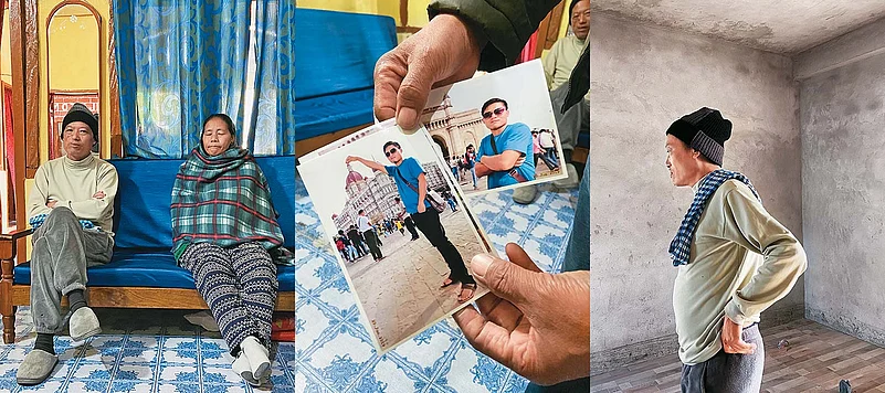Everything else is gone. It is not an erasure. Nothing like that can be attempted here. The mother Pokhao shows a couple of photos. Her son is in a blue jumper in front of the Gateway of India. In another, he is posing in front of the Taj Mahal Hotel. The father is a cancer patient. They had gone to Mumbai for his treatment. He had been struggling to earn money for his father’s treatment. That evening, he was driving the pickup truck and had gone to pick up his friends. The father owns a few mines in Tiru. He was the eldest son and dropped out of college to help the family. In 2022, he would have got married. “He liked the sea,” the father says. The sea. In another place. Loved by Shomwang who was tied to the mountains.