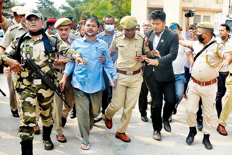 Jailed Akhil Gogoi on his way to file his nomination.