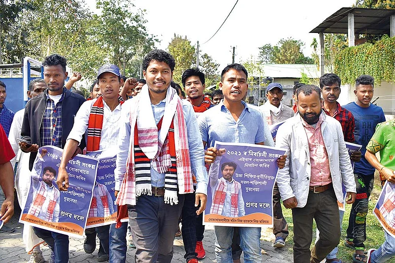 Doley is among the fresh faces contesting the 2021 polls—as independents or hitching a ride with smaller parties. All of them are self-avowedly fighting against the ruling dispensation’s allegedly authoritarian regime that allows no quarter to dissent. The battle, they say, is for “Assamese nationalism” as against the BJP’s all-encompassing, pan-India nationalism. And at the heart of their poll strategy is the contentious Citizenship (Amendment) Act, which fast-tracks Indian citizenship to persecuted non-Muslims from three neighbouring countries. The passage of CAA in 2019 had sparked large-scale, and violent, protests in the state. Five people were killed in police firing.