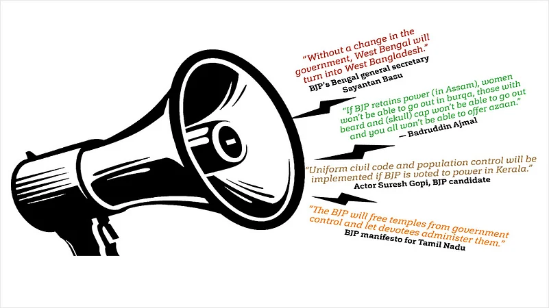The broad pattern is clear: the ongoing campaign for the assembly elections in West Bengal, Tamil Nadu, Kerala, Assam and the union territory of Pondicherry has brought to the surface the layers of polarisation that exist in Indian society, and have sharpened and deepened them through the language of electoral politics. The references are chiefly to religion, but also to regional identities and caste. It has gone beyond the Hindu-Muslim binary. The narrative now encompasses other religions, like Christianity in Kerala. And also castes like the Nadars of Tamil Nadu, communities like the Matuas, Kurmis and Rajbongshis of West Bengal. It also plays overtly on regional identities—Assam is a case in point.