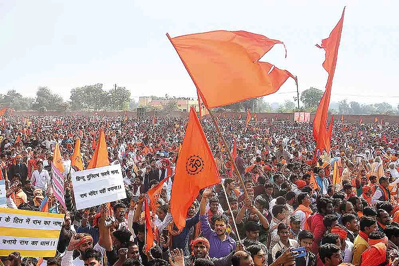 A Ramjanmabhoomi rally by the VHP, an RSS affiliate.