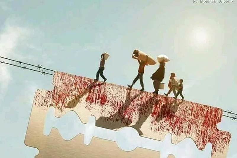 Those images of bestialisation. Humans trying to get back to the security and familiarity of faraway homes in strange and uncertain times, with no other means to do it except on their feet, were being brought to their knees. Baton-waving policemen were making them crawl, or duck-walk, or frog-march. The symbolism was unmistakable. ‘You are being reduced to animal status, to your bare life.’