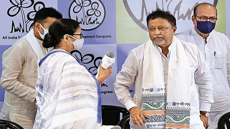 So far, only one big name—the biggest of all TMC turncoats—has dumped them: Mukul Roy. Whether or not Roy plays a pied piper, at the panchayat and zilla parishad level, the flow of elected public representatives from the BJP to the TMC is noticeable. Most say they are inspired by Mamata Banerjee’s leadership. Among the prominent faces seeking to switch camp is former minister Rajib Banerjee, whom the BJP had flown to Delhi along with other TMC deserters. He has not kept in touch with the BJP since losing the election, publicly criticised it for targeting Mamata despite her massive mandate and paid ‘courtesy visits’ to two TMC leaders—Partha Chatterjee and Kunal Ghosh. Besides other factors, the state of leadership in the BJP is itself brittle.