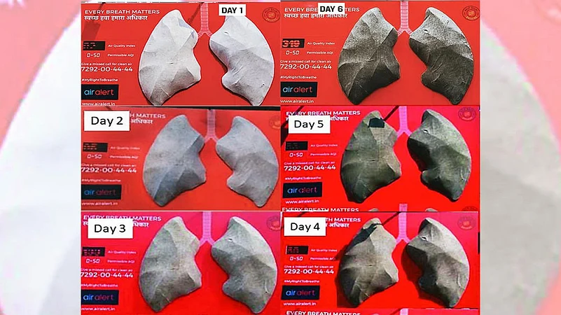 Citizen groups and organisations like jhatkaa.org, Purpose, My Right To Breathe and the Lung Care Foundation worked together to bring the installation to Delhi in November of the same year at the Gangaram hospital. Everyone was shocked as it turned dark black in just six days! Since then, it has visited Gurgaon, Varanasi, Lucknow, Mumbai, Kharghar, Nagpur, and more recently Chandrapur and Ranchi in December 2021.