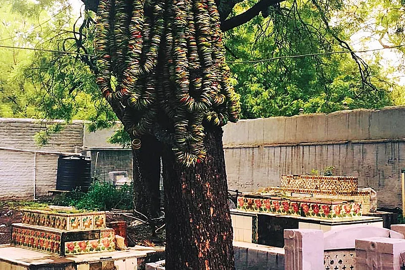 Bangles strung on a tree by the faithful at the shrine of Hazrat Musa Suhaag in Ahmedabad.