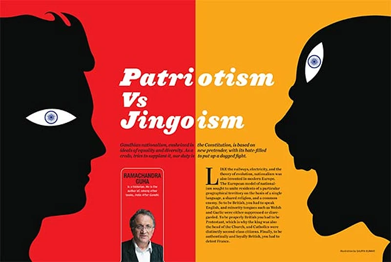 George Orwell celebrated patriotism and decried nationalism. Ramachandra Guha celebrates both. Orwell of 1945 shared Guha’s mistrust of the Left, and both share a mastery of lucid, persuasive, prose. But, reading Guha’s essay Patriotism Vs Jingoism (Outlook, February 5), I was also reminded of Orwell, when he wrote, “A nationalist is one who thinks solely, or mainly, in terms of competitive prestige.” Guha’s dismay at our current state of affairs is understandable. This is the moment to celebrate, as he does, the history of a more inclusive, diverse and tolerant sense of belonging over chest-thumping jingoism. Even an ardent admirer of his writing, however, would question whether his was the best way to make that point. The argument he makes is necessary, even crucial, at this point in our history. But doing so by celebrating the superiority of Indian nationalism over other nationalisms robs his argument of its moral authority and historical gravitas.